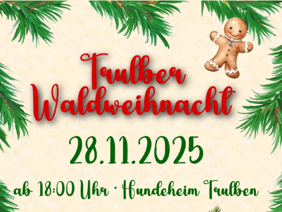 Am 28.11.2025 findet wieder die Trulber Waldweihnacht statt. Im schön dekorierten Bereich des Vereinsheims des Schutz- und Gebrauchshundevereins Trulben (Ungerdelle) werden, vom Musikverein Trulben, adventliche und weihnachtliche Melodien gespielt. Es gibt Waffeln, Bauerneintopf, Glühwein und Tee. Lassen Sie sich auf die kommende Advents- und Weihnachtszeit einstimmen.